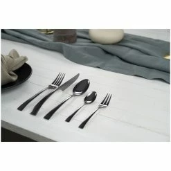 This Bellasera set features contemporary styling, fashioned with a unique standing knife design that makes an elegant statement at the table. With a satin finish, this modern design is a perfect complement to any table setting. This set features 4 x 5-piece place settings.