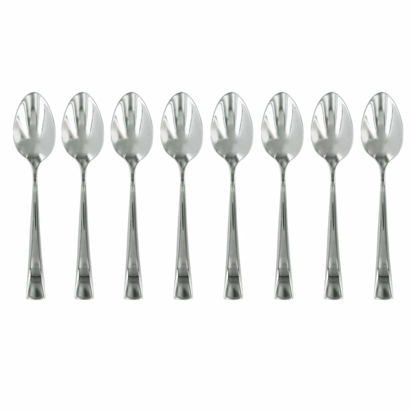 This Bellasera set features contemporary styling, fashioned with a modern handle design that makes an elegant statement at the table. With a highly polished mirror finish, this modern design is a perfect complement to any table setting. This set features 8 espresso spoons.