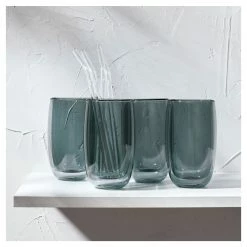 The Sorrento 8-piece set offers four 11.8-ounce latte glasses in our cool smoke grey color with four clear bent straws and a handy cleaning brush. Enjoy a hot coffee or cocoa or sip a refreshing chilled beverage with the reusable borosilicate glass straws that feature a bent design. The double wall glasses maintain the toasty temperature of lattes and other hot beverages while remaining cool to the touch. And cold drinks, such as iced lattes, stay chilled without leaving messy condensation rings on the table.