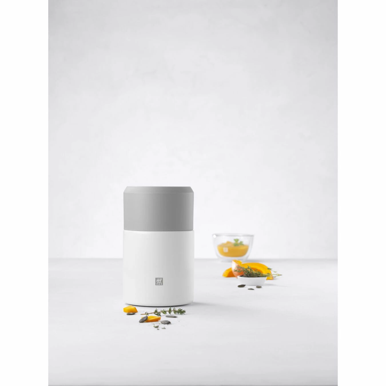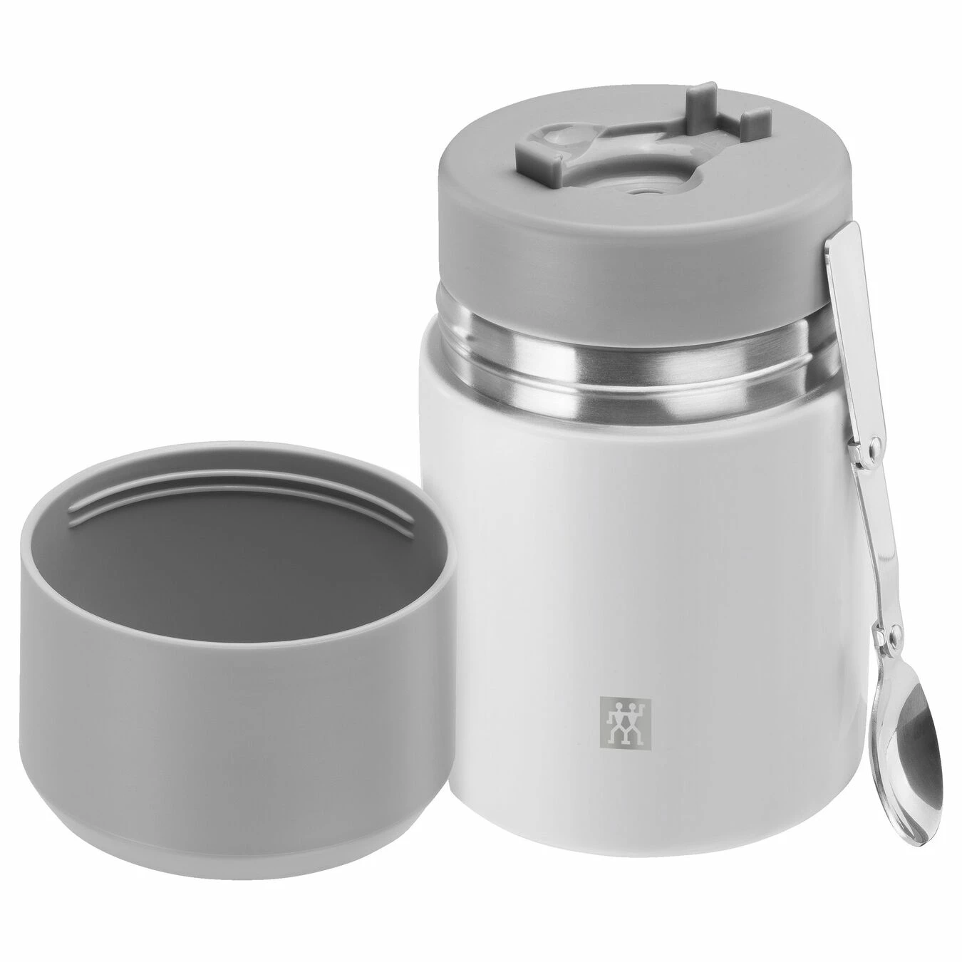 The Thermo Food Jar is perfect for soups, pastas, fruits, salads, and more when you want to bring your meal with you. Hot food stays hot for up to 8 hours and cold food stays cold for up to 11 hours. The lid doubles as a bowl and features a foldable metal spoon. Available in silver-white and black matte, this attractive jar is a stylish way to take food on the go.