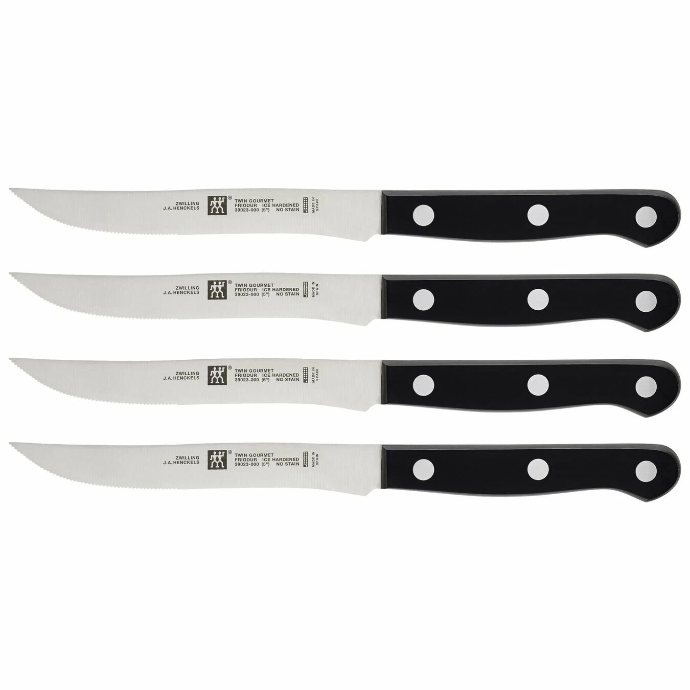 The ZWILLING TWIN Gourmet Classic line features precision steel and a single piece stamped construction. ZWILLING Special Formula, high carbon no-stain steel blades are FRIODUR ice-hardened to be durable, stay sharp, and not rust. Classic Triple Riveted Handle for comfort, durability and strength. Made in Spain, lifetime warranty.